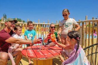 Sur place : pataugeoires, restaurant, bar-snack et à 1 km de la mer. Les hébergements en mobil-homes et chalets accueillent 3 à 8 personnes, et les emplacements nus reçoivent tentes, caravanes et camping-cars.