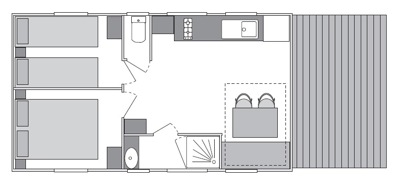 - Une chambre avec 2 banquettes transformable en deux lits simples 80 x 190 cm